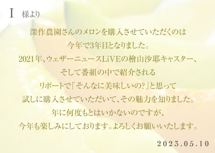 2025/04/194/19(土)・20(日)先行ご予約会開催 今年も美味しいメロンの季節が近づいてまいりました。 シーズン開始に先駆けて、2025年5・・・